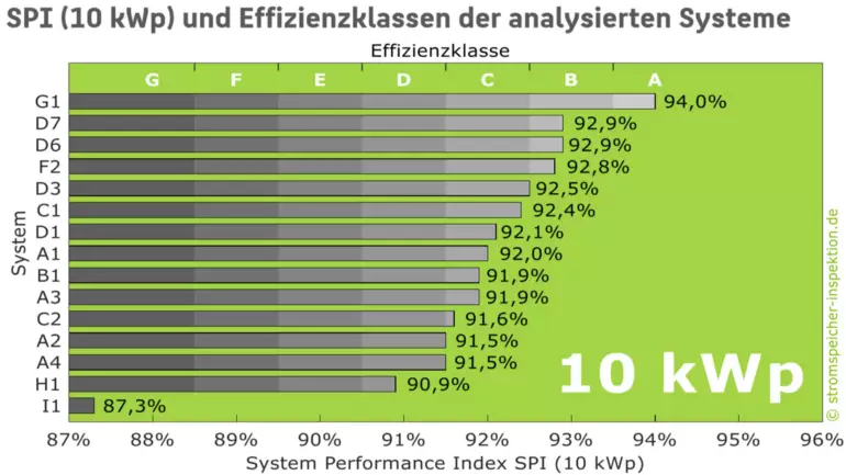 Unabhängige Prüfinstitute testeten die Gesamteffizienz von Heimspeichersystemen und analysierten dabei das Zusammenspiel von PV-Systemen und Batteriespeichern. Für die Bewertung wurden zwei unterschiedliche Referenzfälle herangezogen. Ersterer kombinierte eine 10kWp PV-Anlage mit Wärmepumpe und Elektroauto sowie einem Haushaltsjahresverbrauch von 5.010 kWh/a, während der zweite Referenzfall den SPI (System Performance Index) für eine 5 kWp PV-Anlage mit Haushaltsjahresverbrauch von 5.010 kWh/a analysierte.